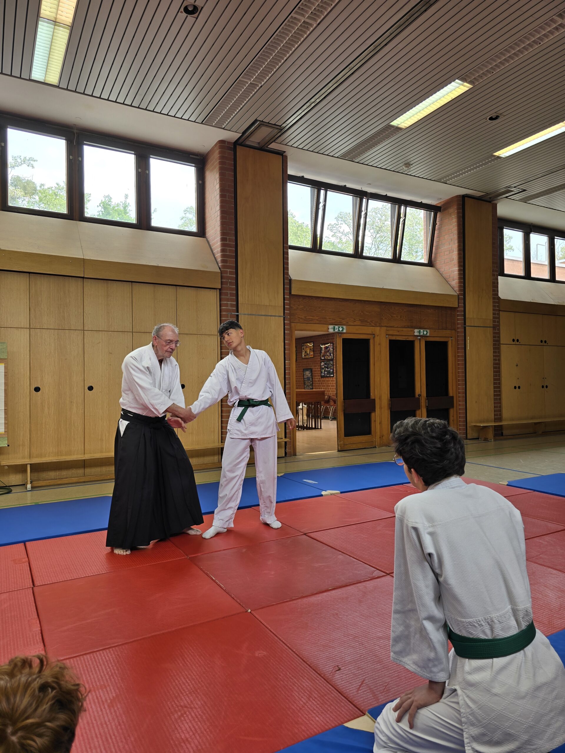 Wir haben interessante Dinge aus der Geschichte des Aikidos erfahren, wir haben interessante Techniken lernen dürfen und wir sind über den aktuellen Stand des Aikido in Iwama und und im Hombu Dojo informiert wurden. Rudi wurde erst vor kurzem durch Moriteru Ueshiba, amtierender Doshu des Aikikai, zum Shihan ernannt. Eine sehr hohe Auszeichnung als Aikidomeister.