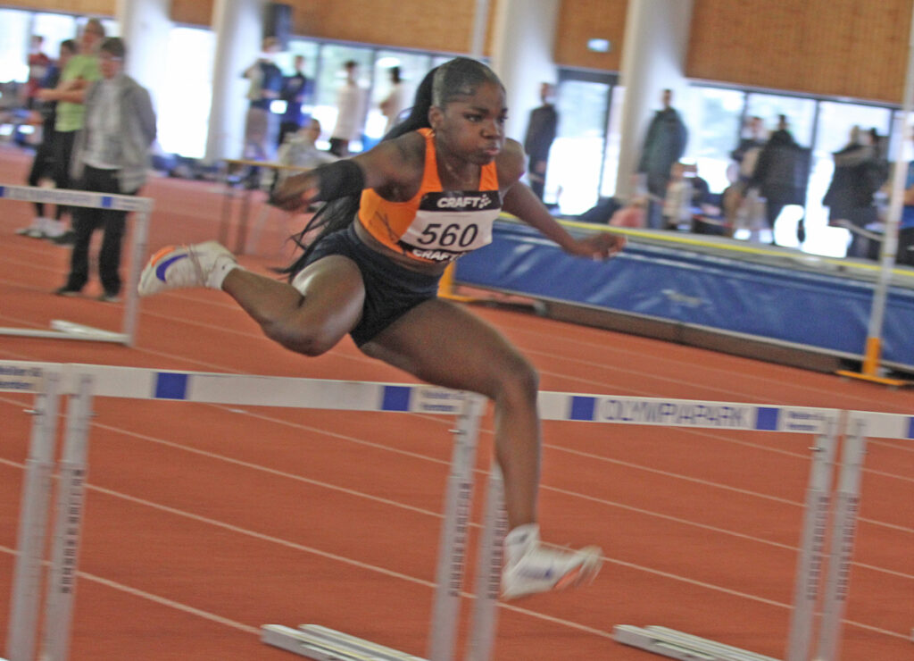 Delisha Benelisa Domingos nutze den Flow des Tages aus und verzichtete den Start im A-Finale über 60 m und trat lieber im 60 m Hürdenlauf abermals in die Startblöcke. Ganz souverän gewann sie ihren Lauf in 8,27 Sekunden und blieb nur zwei Hundertstel über ihrer Hallen Bestleistung.