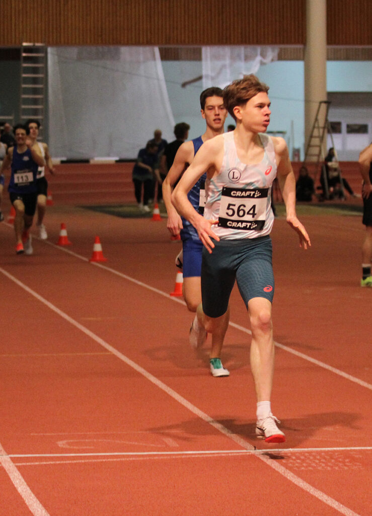 Im 1.000 m Lauf der männlichen Jugend U20 zeigte unser Deutscher 5.000 m Meister aus dem Vorjahr, Benjamin Klonowski seine Stärke, indem er im Finish den Sieg in 2:35,40 Minuten nach Hause lief. Mit dieser Zeit liegt Benjamin derzeit auf Rang 4 der laufenden Deutschen Hallen Bestenliste.