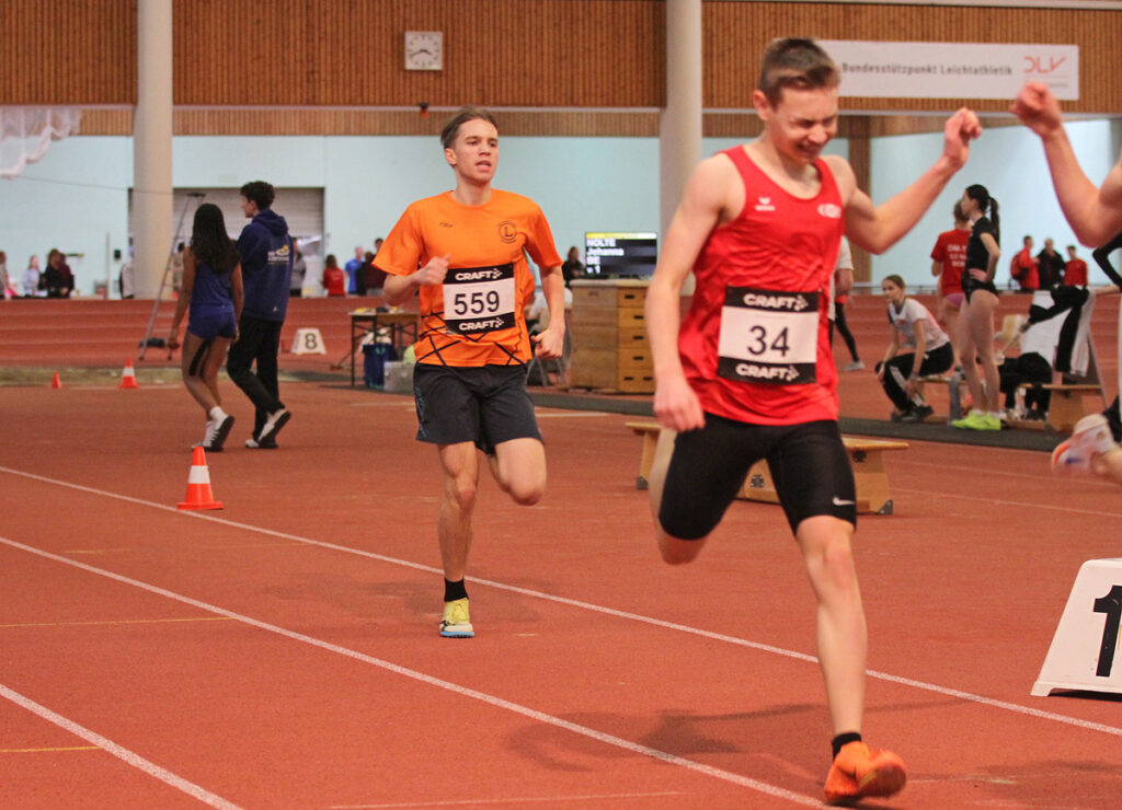 Die weiteren Starter-/innen über 60 Meter erreichten mit ihren Leistungen nicht das Finale. Die Ergebnisse: Joline Steinert (Fr) 9,04, Tom Wormuth (M20) verbesserte sich von 8,48 auf 8,07 Sekunden und Felix Lüdemann steigerte sich von 7,69 auf 7,45 Sekunden.