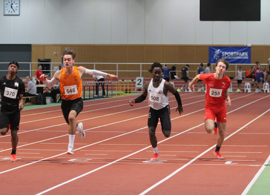 Mit neuer Bestzeit über 60 m (7,38 s) qualifiziert sich Felix Lüdemann für das B-Finale