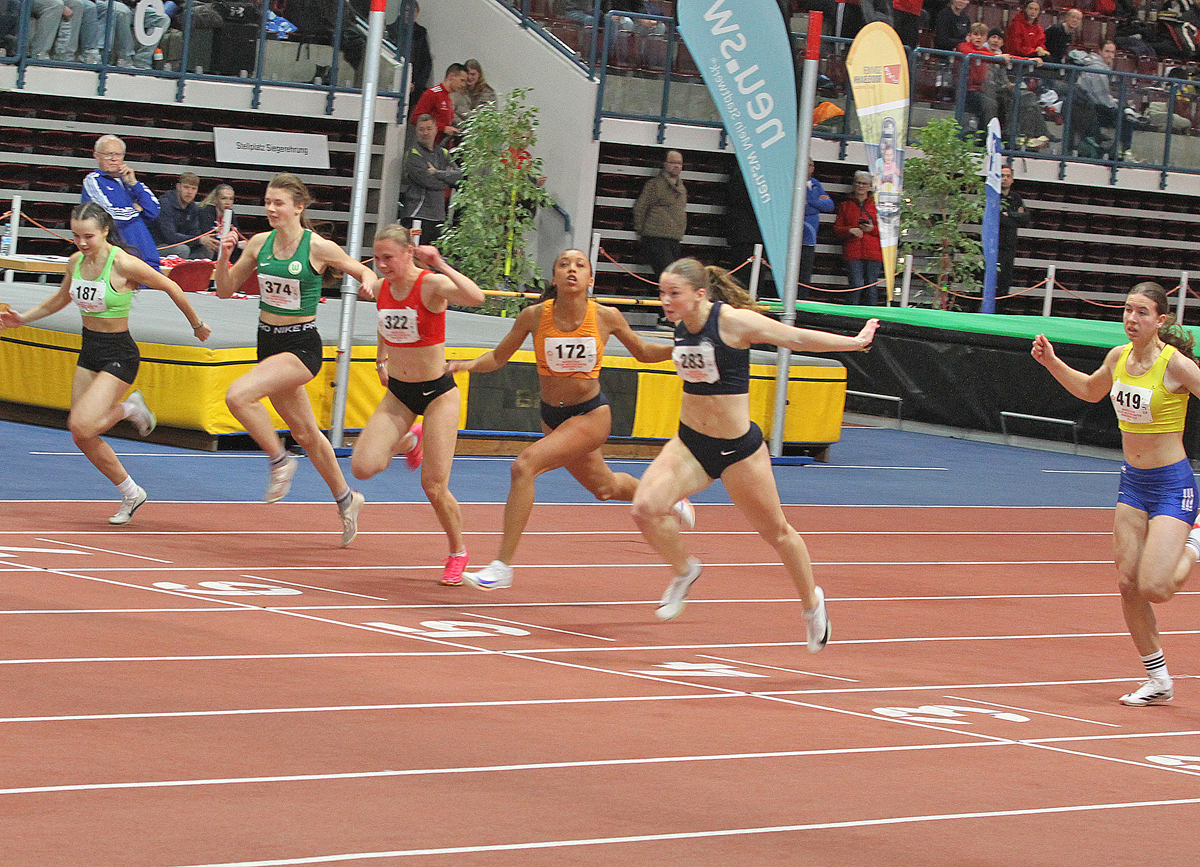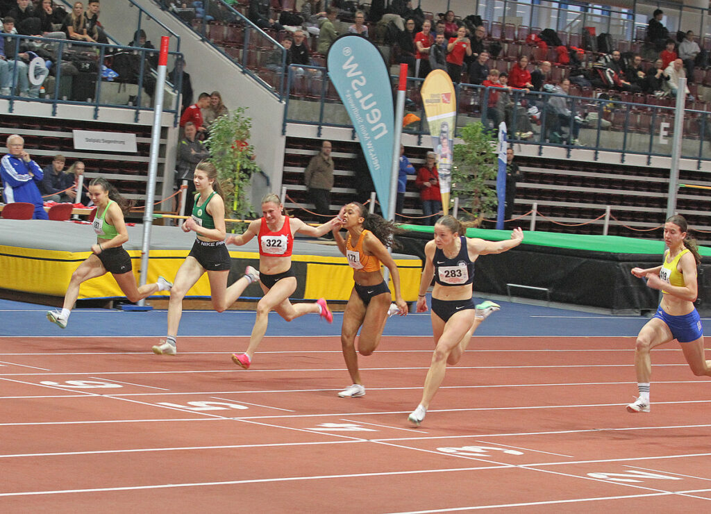 Für Helena Allegra Bendig (U20) gab es mehrere Optionen zu erfüllen. Ihr letzter Start war verletzungsbedingt am 07. Juni letzten Jahres auf einer Sprintstrecke und eine Qualifikationszeit für die Deutsche Jugend Hallenmeisterschaft für dieses Jahr in Sindelfingen war auch noch zu erfüllen. Im 1. Vorlauf legte ihre Konkurrentin Paula Springstein (0stsee Sprint- und Laufteam Rostock e.V.) schon die schnellste Vorlaufzeit mit 7,62 Sekunden vor. So ging es in ihrem Vorlauf darum die Zeit zu unterbieten.