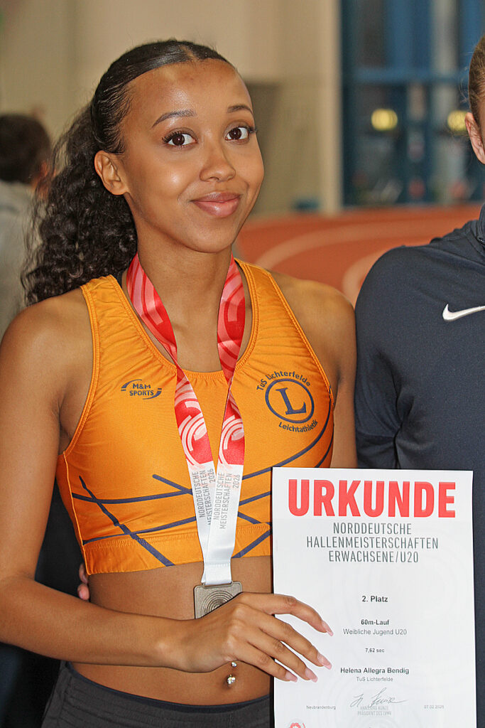 Helena Allegra Bendig (U20) wird Norddeutsche Vizemeisterin im 60 m Sprint