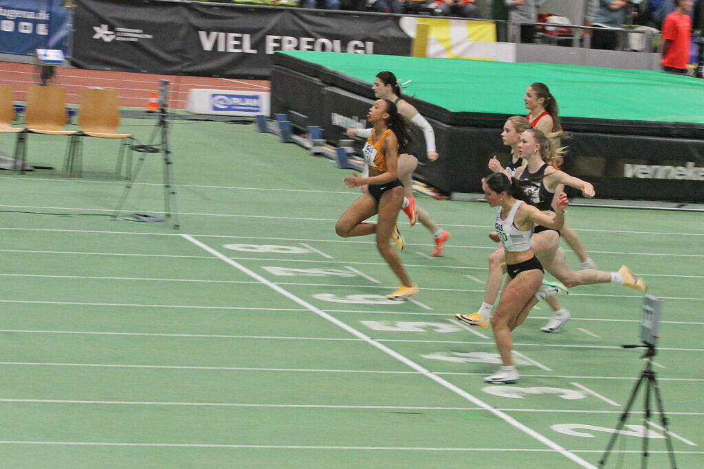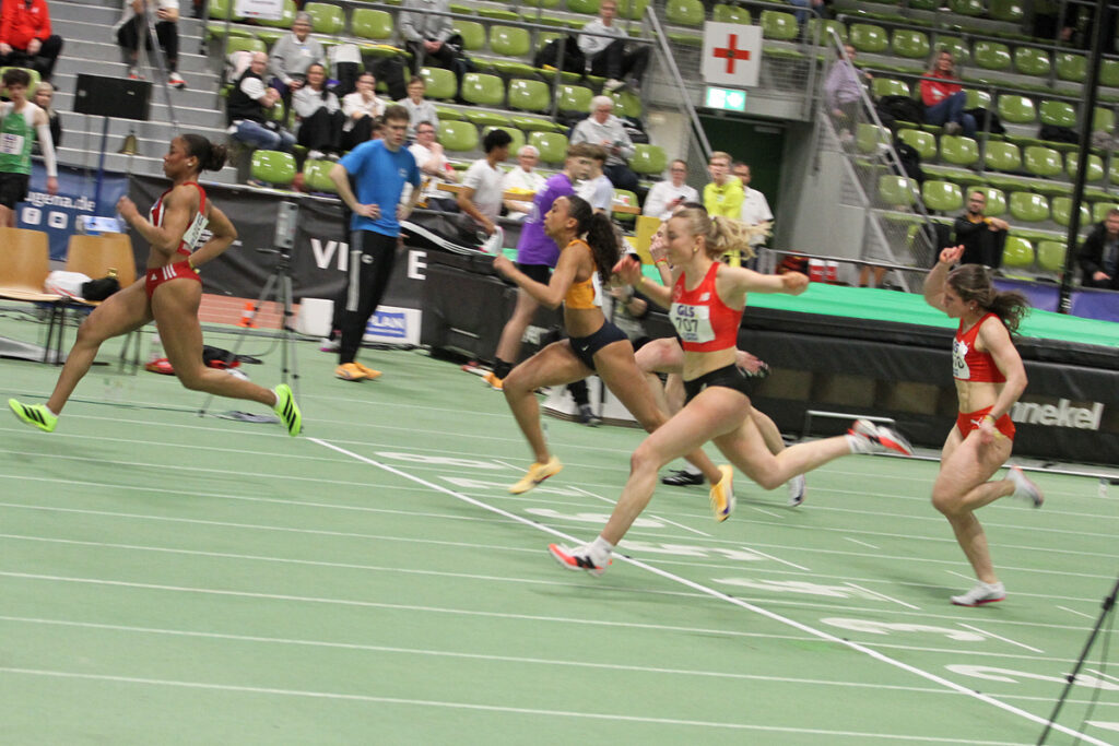 Im 3. Halbfinale Lauf über 60 Meter machte Helena Allegra Bending den Finaleinzug über die Zeitregel klar. Als Dritte Ihres Laufes mit einer weiteren Steigerung auf 7,48 Sekunden hatte sie die fünftbeste Zeit aller Halbfinalistinnen erzielt und blieb nur zwei Hundertstel über Ihrer letztjährigen Zeit der deutschen Hallenmeisterschaften in Dortmund.