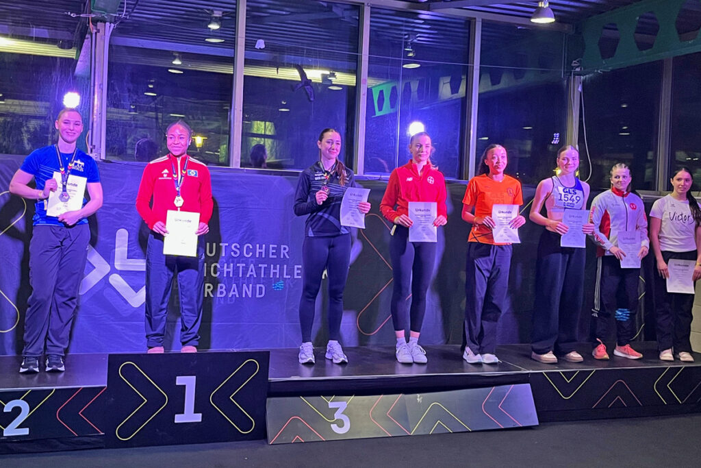 Siegerehrung mit Patz 5 für Helena Allegra Bendig im 60 m Finale der weiblichen Jugend U20