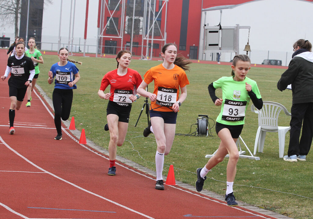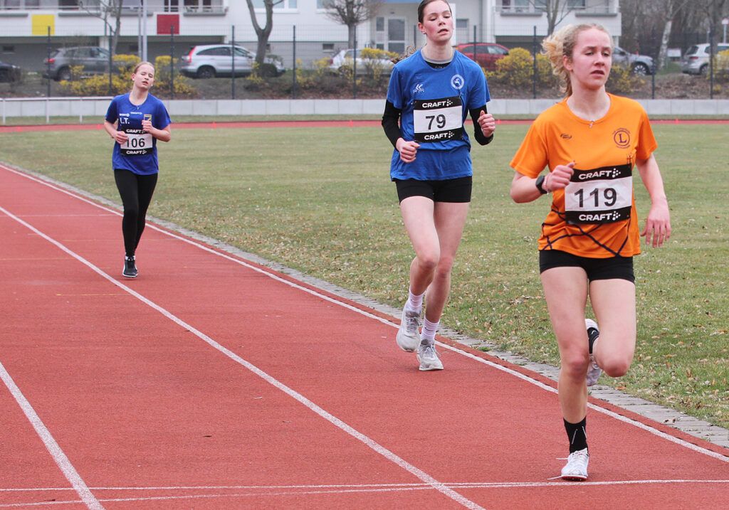 Einen größere Leistungsverbesserung konnte Marie Merten (W15) im 3.000 m Lauf vermelden. Sie ging gleich flott mit an und passierte die 800 m in 2:48,82 und die 2.000 m folgten in 7:36,96 Minuten.